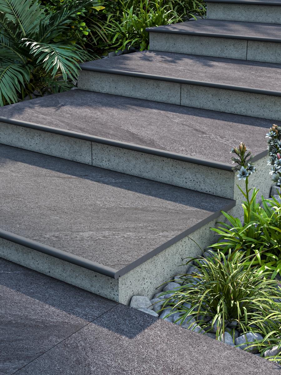 Anthracite Porcelain Bullnose Tiles - 900x300x20mm