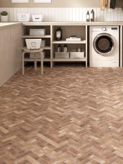 These versatile Spanish tiles can be used both indoors and out. These tiles come in an interlocking finish, creating the ever-so-popular continuous herringbone pattern. Due to its leading design and innovation, the grout can be used over the tiles, ensuring you don't see any joints, just as the image depicts.