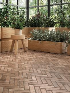 These versatile Spanish tiles can be used both indoors and out. These tiles come in an interlocking finish, creating the ever-so-popular continuous herringbone pattern. Due to its leading design and innovation, the grout can be used over the tiles, ensuring you don't see any joints, just as the image depicts.