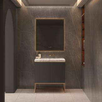 With the natural Carrera marble countertop and ceramic sink, it stands out in every space. The stainless steel PVD-coated gold legs add sophistication to the entire unit. You can pair it with our optional mirror available with this vanity.