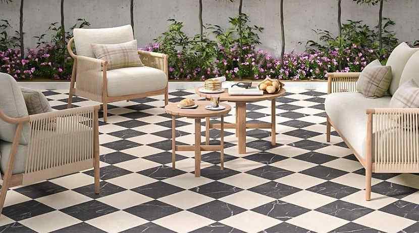 Mostly popular for indoors, outdoor checkerboard tiles are also gaining popularity for patios, porches, and garden pathways. However, when selecting tiles for outdoors, always ensure that the option: