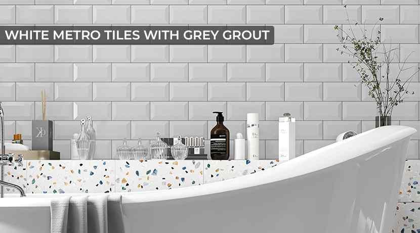 Pairing white metro tiles with grey grout is currently trending in the UK. Classic metro tile with grey grout creates depth in your bathroom and is easier to clean.