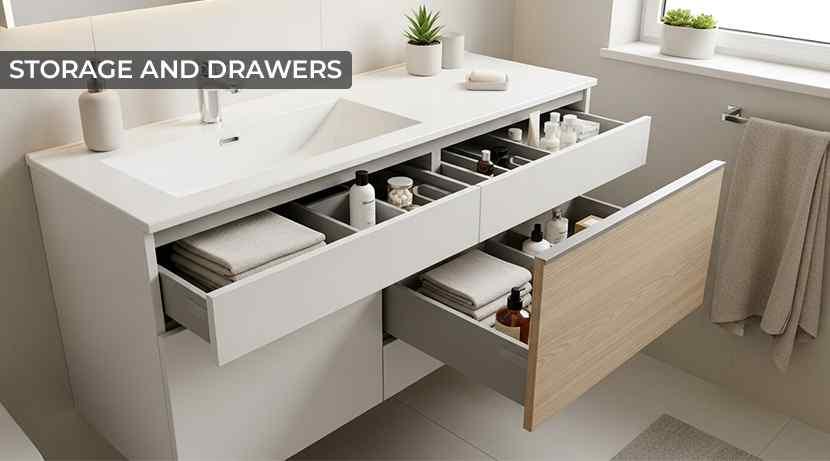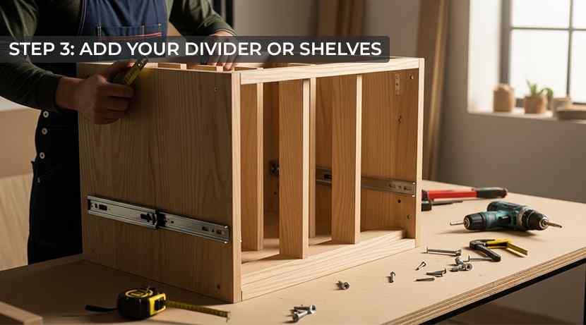If your vanity unit design includes drawers or open shelves, add your dividers now. Use drawer slides for your drawers, which is a great way to enhance the overall functionality of your vanity.