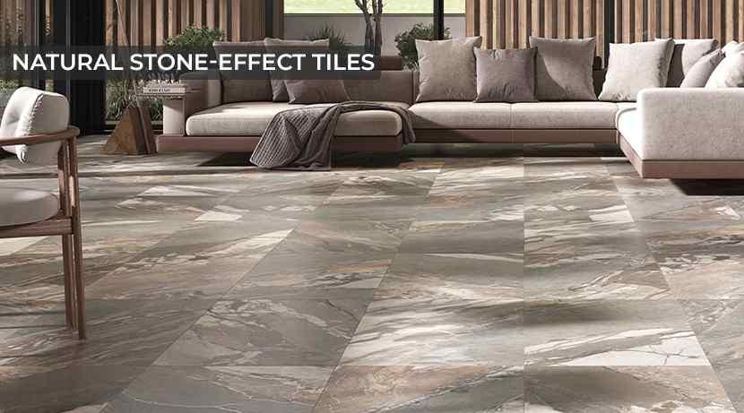 - Marble-Effect Tiles: These luxury floor tiles for living rooms bring natural light to your indoor living areas.