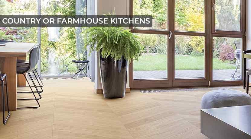 Wood-effect porcelain tiles replicate the warmth of timber without the maintenance of the actual wood. They are highly durable, making them perfect for rustic yet practical kitchen flooring.
