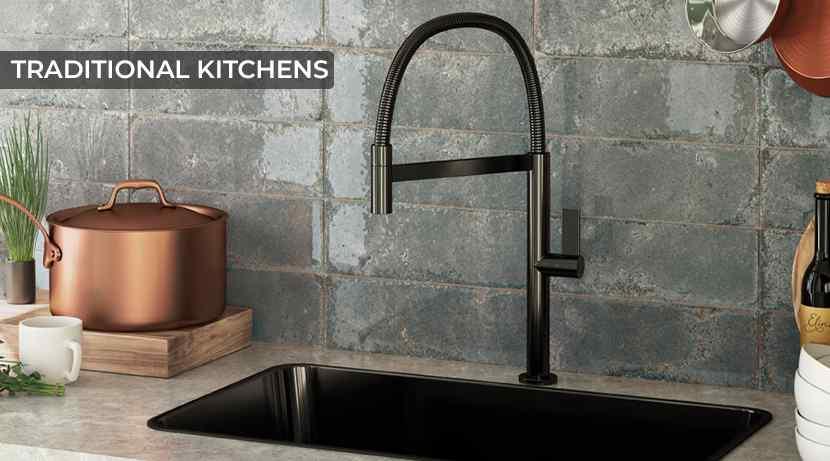 For a classic kitchen, ceramic tiles with subway or metro patterns are choices that will not only enhance your home’s value but also look great. They reflect light beautifully and pair very well with brass fixtures and neutral cabinets.