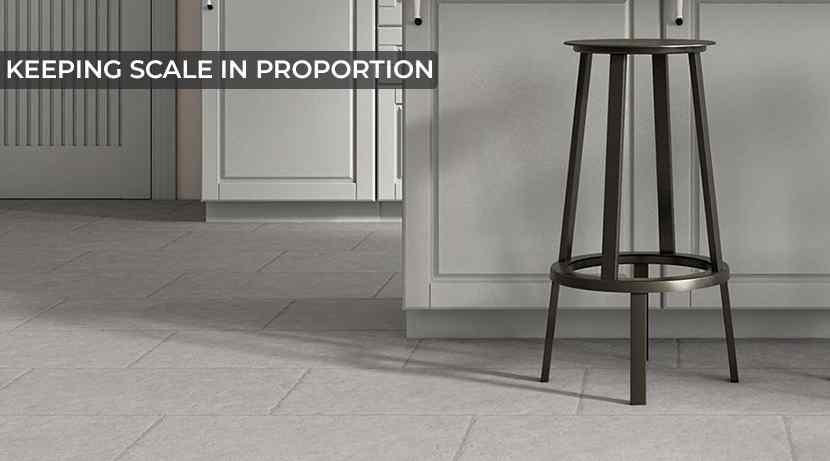 If you have already decided on large-format floor tiles for your small rooms, do not pair them with bold wall tiles, as they can overwhelm them. For your compact spaces, pair your large floor tiles with simple wall tiles to create a more open feel.
