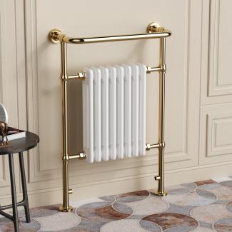 The Chelsea Shiny Gold & White Traditional Heated Towel Rail Radiator beautifully combines classic design with modern efficiency. Made using high-quality electoplated steel, this radiator is a reliable choice for your modern British home.