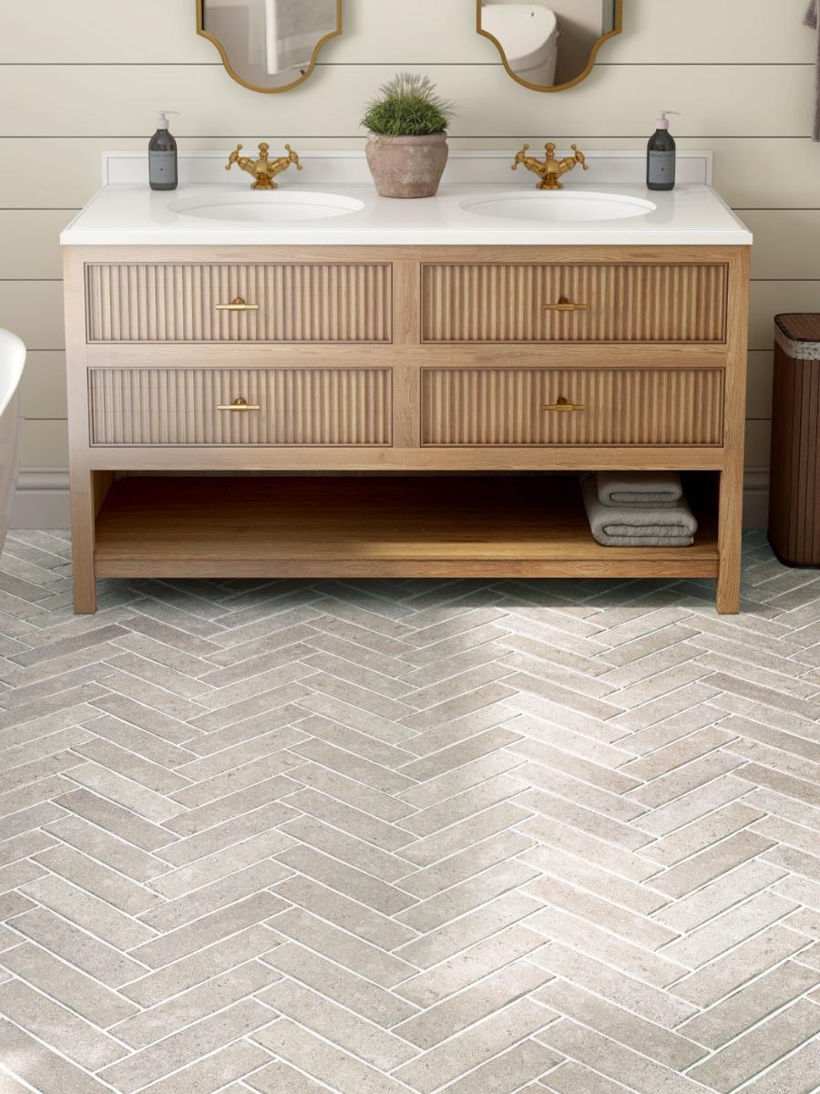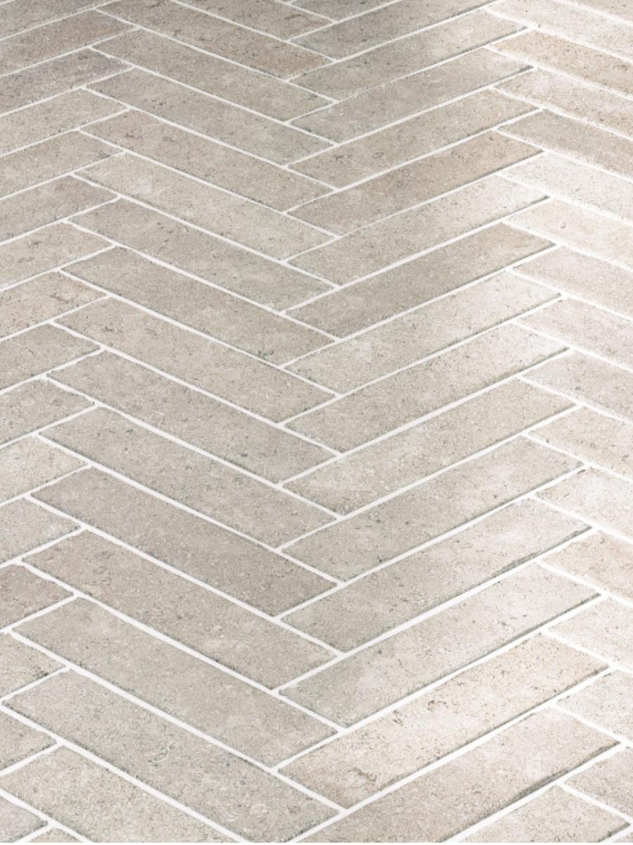 Want something that elevates your indoors? The Dijon Limestone Tiles are stunning herringbone-pattern slabs, designed to add a soft, rustic charm. The beautiful light cream and beige tones complement multiple colour schemes. The tumbled finish with natural mineral veining and fossil markings adds an aged charm to indoor spaces.