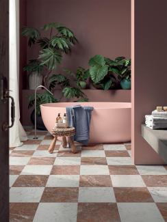 These porcelain tiles are a great choice for creating the vintage style checkboard look when paired with Lusso Carrara porcelain tiles. It adds a classic charm to the space while offering contemporary features.
