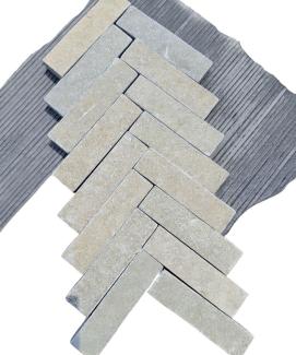 These natural limestone pieces with their tumbled edges offer outdoor spaces a soft yet authentic look. The 200x50 format makes it ideal for different tiling formats, including herringbone and basket weave.