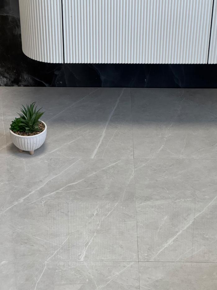 Elegant homes mostly feature simple tiles as they exude extravagance at their best. These simple tiles in a light grey shade give you the feel of elegance and style with modern minimalist visuals. Surfaced with a shimmer finish, this porcelain tile replicates the effects of natural concrete, making it a chic tiling option.