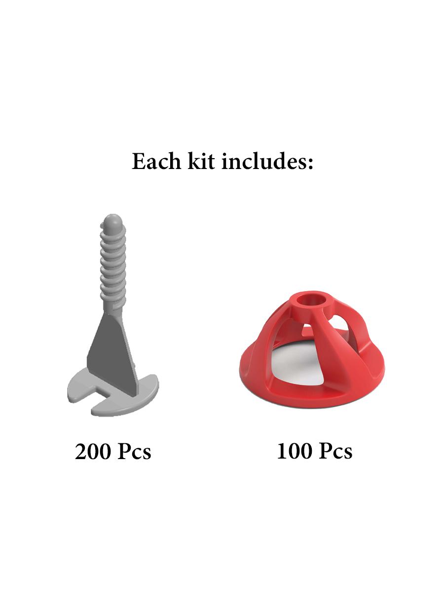 Kit Includes: 1 Pack of Twister Screw Spacer (200 pcs) & 1 Pack of Twister Reusable Caps (100 pcs) per Levelling System Kit.