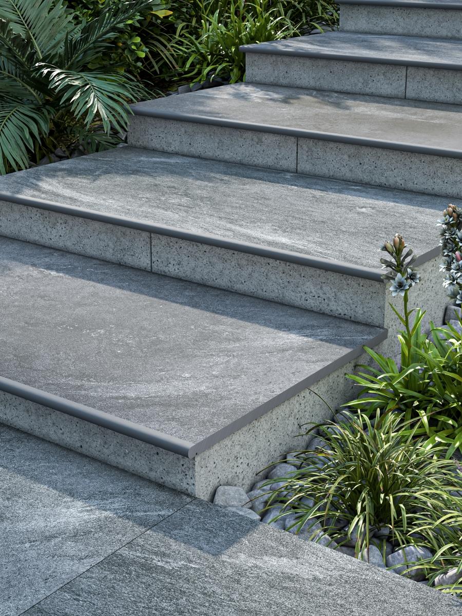 Give your outdoors a clean, refined look with the Valencia Grey Porcelain Bullnose Tiles. These 900x300mm porcelain tiles with curved edges are used to smooth corners. It is perfect for creating a smoother and safer underfoot while also giving a high-end look.