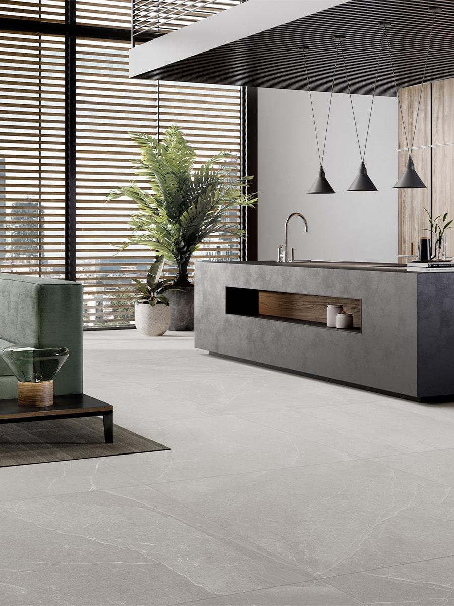 Designed and manufactured in Italy, these matt tiles are both big on size and character. They are inspired by natural stone with a subtle pattern. Being non-slip, these tiles can also be used in bathrooms.