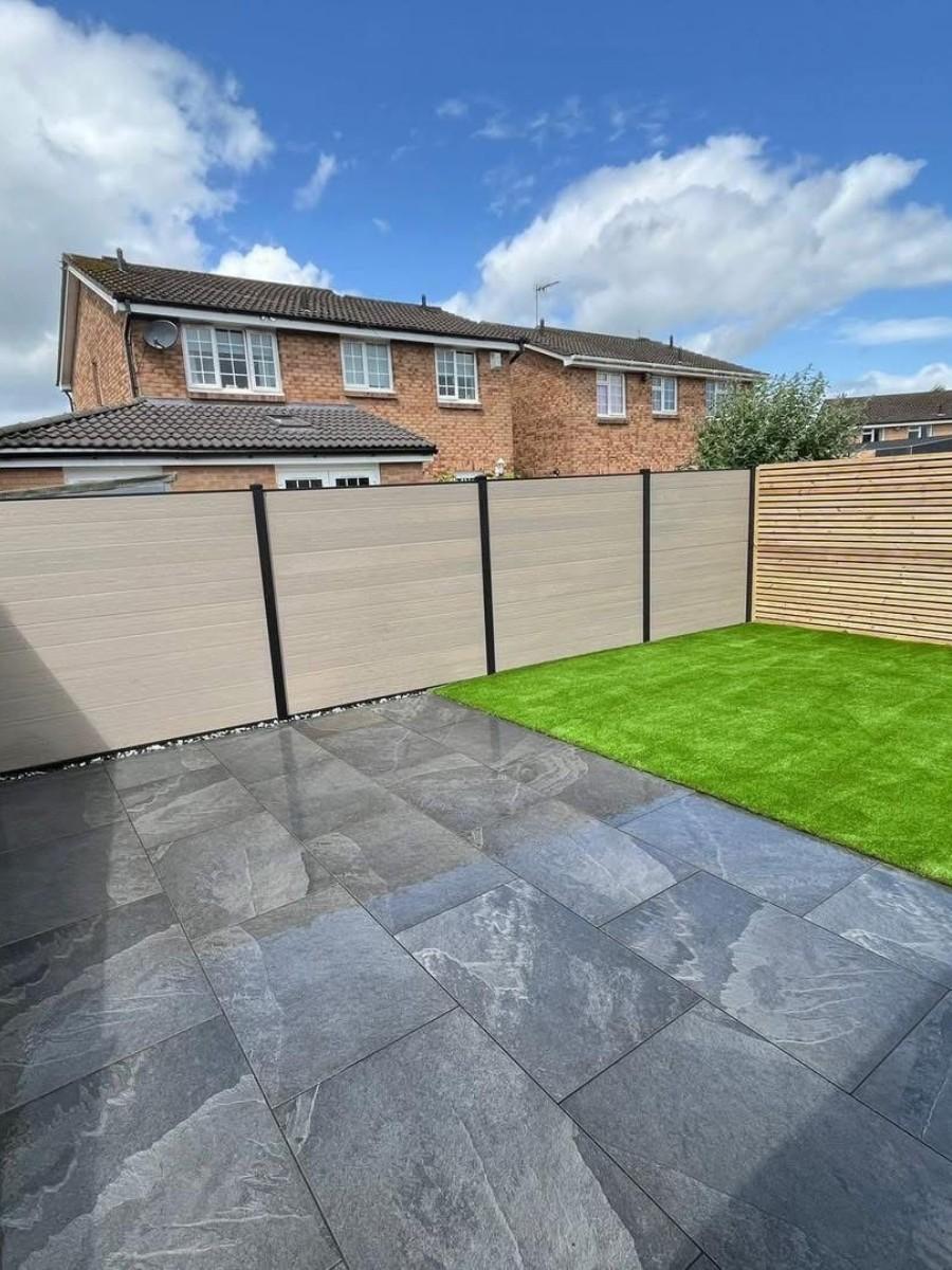 The dark color and Slate pattern make these slabs a perfect choice for contemporary gardens with a natural feel.
