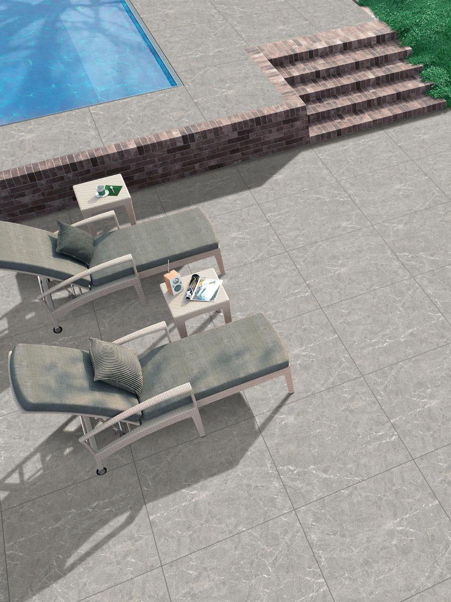 Marquina Grey Outdoor Porcelain Paving Slabs boasts a range of greyish tones, which sets these tiles apart. The tiles are frost-resistant and easy to maintain due to there flat surface.